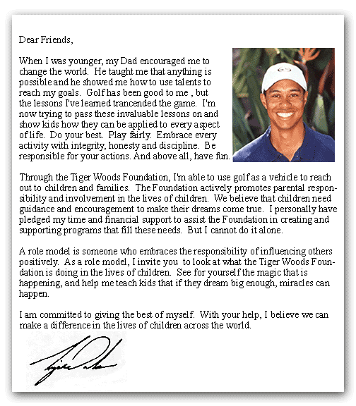 Carta a todos los fans de Tiger Woods.